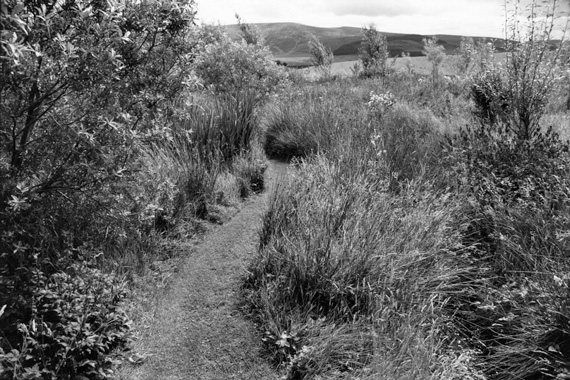 After gaining my Diploma in Art & Design at Hornsey College of Art in 1967, I was at a loss to know what to do next. An opportunity suddenly arose to work at the Richard Demarco Gallery, Edinburgh. Just south of the city, in the Pentland Hills, Ian Hamilton Finlay had just started making his garden on the barren hillside boasting a single tree. He had dammed a stream to create the lochlin where he and his youngsters could row and sail their tiny boat. Years later, after the Siege of Little Sparta and all that had gone between, I returned to find that the garden had extended steadily over the moor in carefully planned compartments. The paths fascinated me: silence between the words…